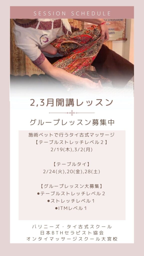 2月・3月のレッスンスケジュールが確定しましたのでご案内いたします。