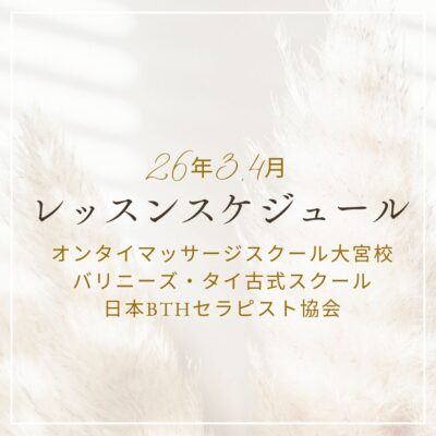 いつも日本BTHセラピスト協会をご愛顧いただき、誠にありがとうございます。 2月も多くの受講生の方にお会いでき、熱意あふれるレッスンを共有できたことに心から感謝申し上げます。